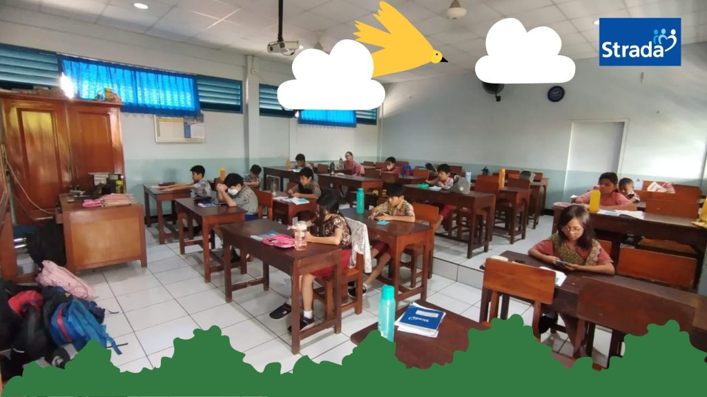 Kegiatan Hari Batik Nasional anak-anak SD Strada Santo Fransiskus serempak mengenakan pakaian batik terbaik mereka.